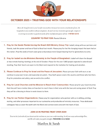 Below are monthly Prayer Points of emphasis for the Ministry.